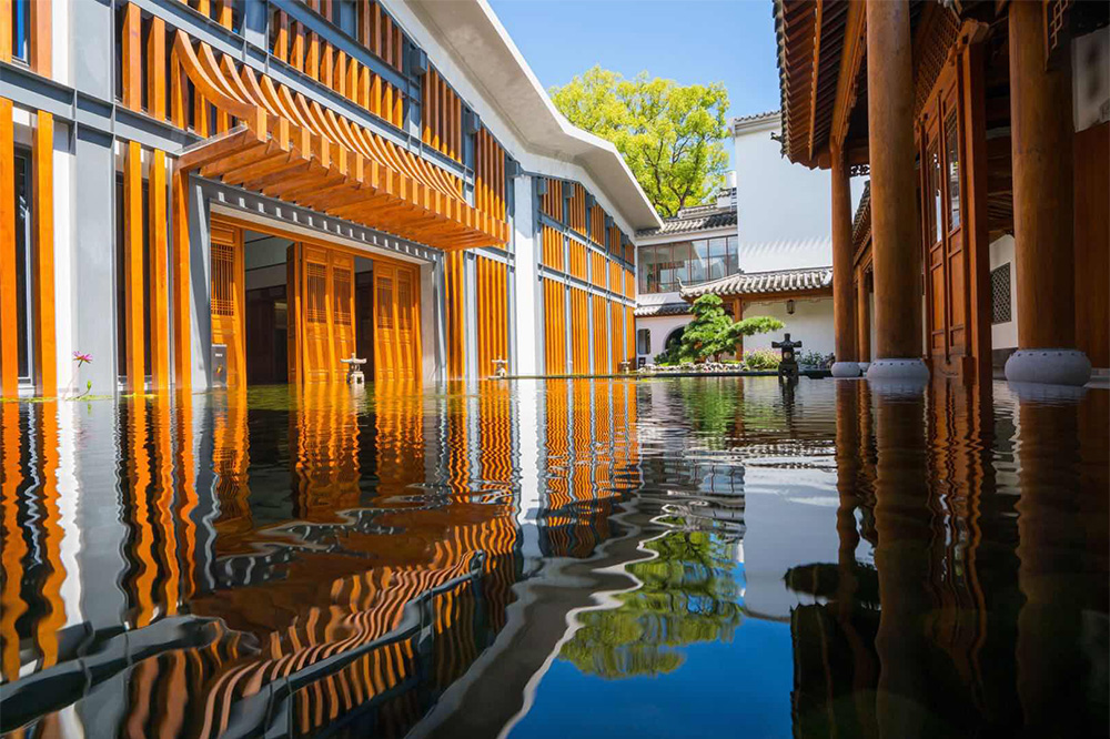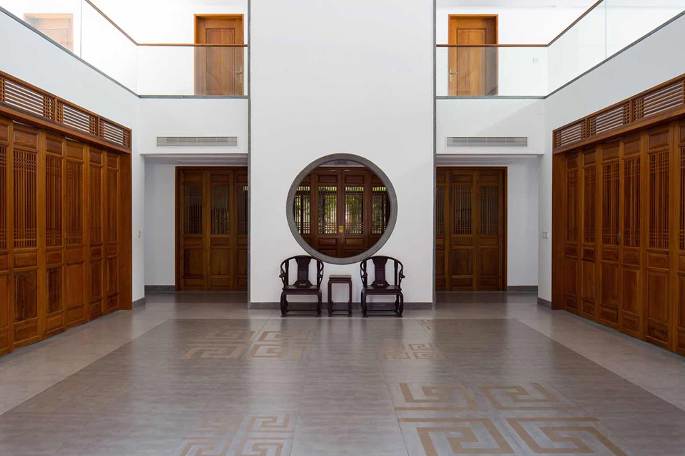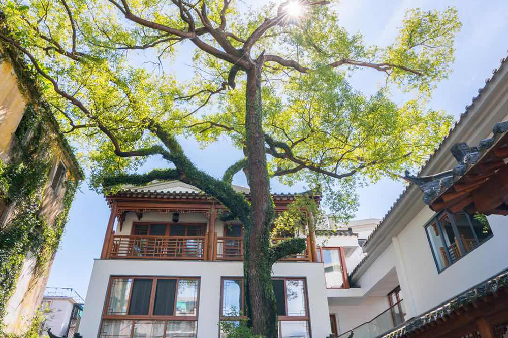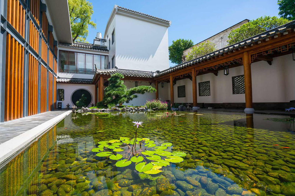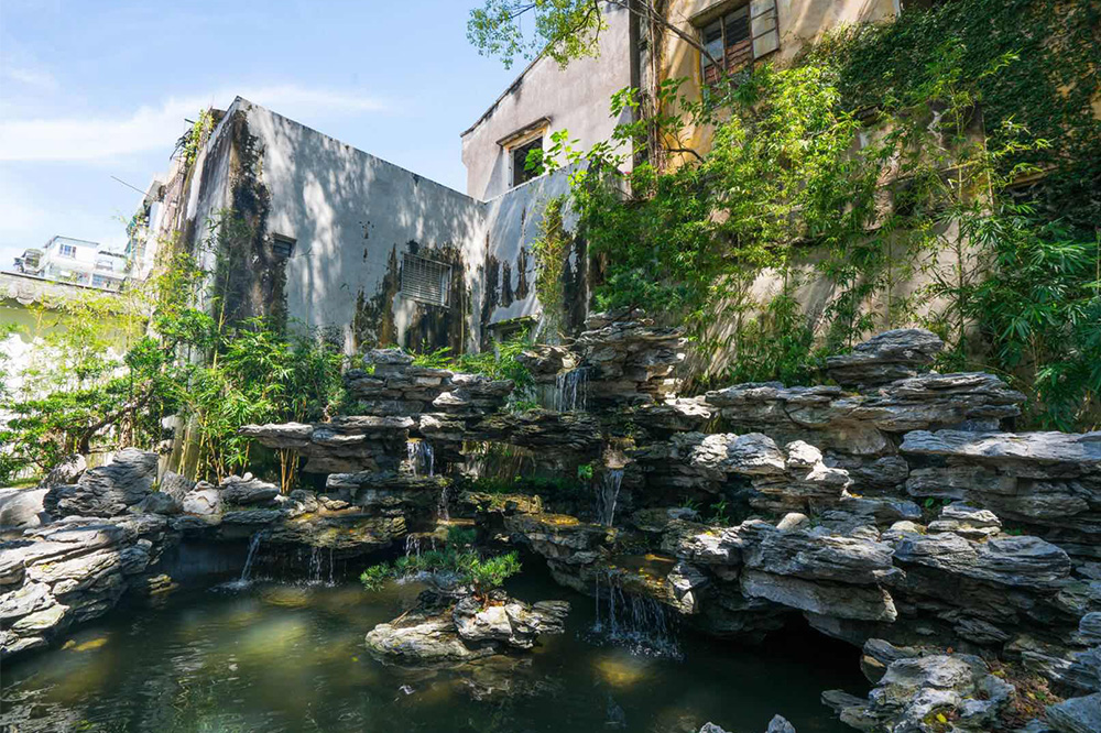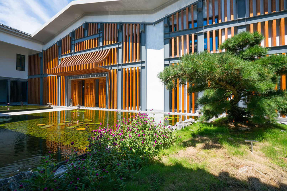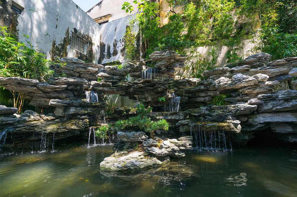 园内古树参天、花草茂盛、回廊曲径、设山引水,充分体现园主人对人与自然和谐相处的现代理念。