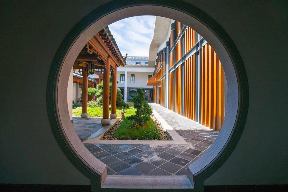 明德园建成于2016年,位于潮州市古城区太元路,占地面积2000多平方米,建筑面积约2500㎡,为二层半潮州仿古民居的现代建筑,吸收潮州古民居元素,如石门楼、天井、白墙、黛瓦……汲取现代建筑的实用功能,风格简洁朴素,崇尚自然,利用通透、采光、通风功能从而达到环保水平。